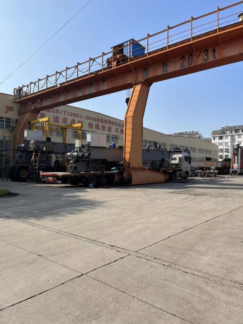 靖起生產(chǎn)的2臺(tái)500噸液壓龍門吊發(fā)貨啦!