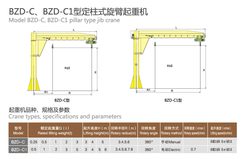柱式旋臂起重機是近年來發(fā)展起來的中小型吊運設(shè)備。其結(jié)構(gòu)獨特,安全可靠,具有高效、節(jié) 能、省時、省力、靈活的特點。與電動葫蘆或手拉葫蘆配套使用,能在三維空間內(nèi)隨意操作,特別是在短距、密集性吊運的場合更能顯示出比常規(guī)吊運設(shè)備獨有的優(yōu) 越性。廣泛應(yīng)用于車間、倉庫、碼頭等固定場所。我廠擁有國內(nèi)16t(含)以下懸臂吊生產(chǎn)資質(zhì)。