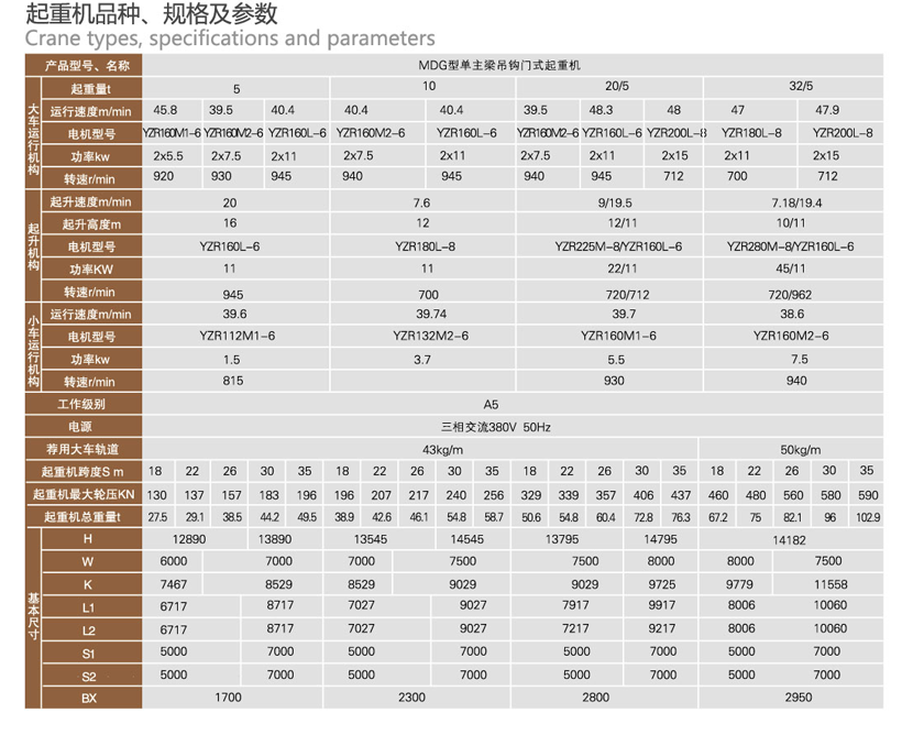 MDG型單主梁吊鉤門式起重機(jī)選用注意事項(xiàng):