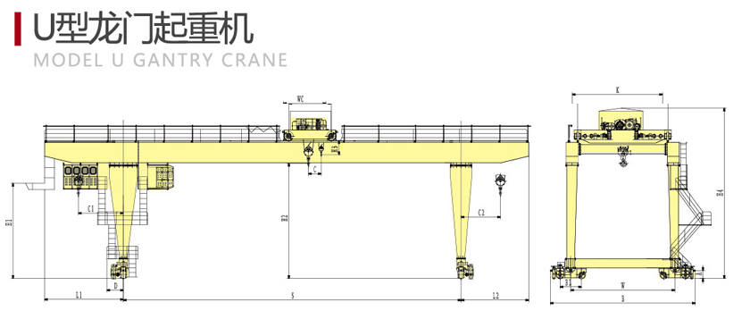 U型門式起重機(jī)適用于露天倉庫或鐵路沿線進(jìn)行一般的裝卸及起重搬運(yùn)作業(yè)。配專用吊具可做集裝箱作業(yè)。