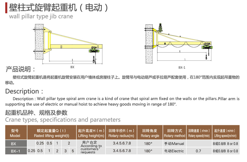 壁行式旋臂起重機是機械制造、裝配車間的專用機械,它利用布置在多層裝配車間墻壁上 的軌道,在墻壁上行走,可以充分利用車間的空間結(jié)構(gòu),節(jié)約了生產(chǎn)場地,作業(yè)靈活。
