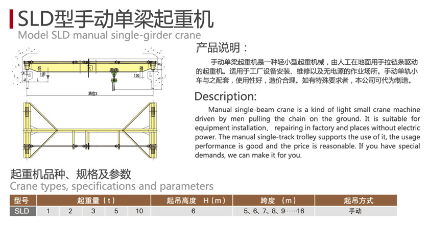 手動單梁起重機是一種輕小型起重機械,由人工在地面用手拉鏈條驅(qū)動的起重機。適用于工廠設備安裝、維修以及無電源的作業(yè)場所。手動單軌小車與之配套,使用性好,造價合理。如有特殊要求者,本公司可代為制造。